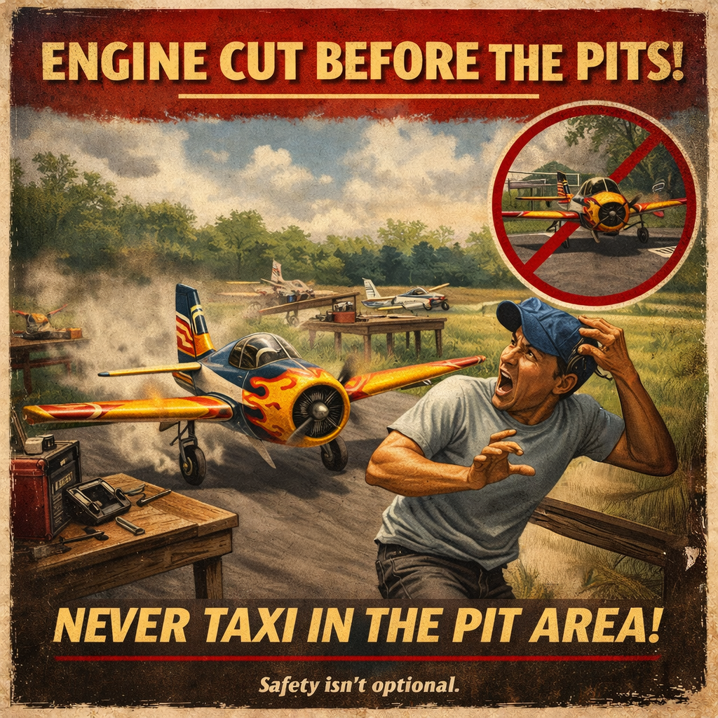 Taxiing in the pits introduces spinning blades, unexpected throttle bumps, and distracted pilots carrying gear. All it takes is one slip of a switch or one stumble.